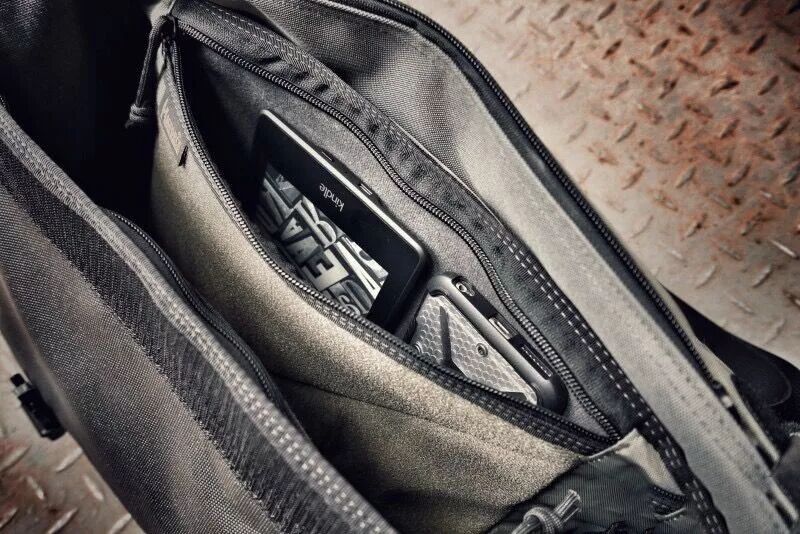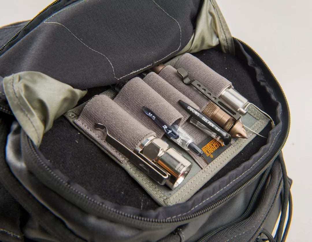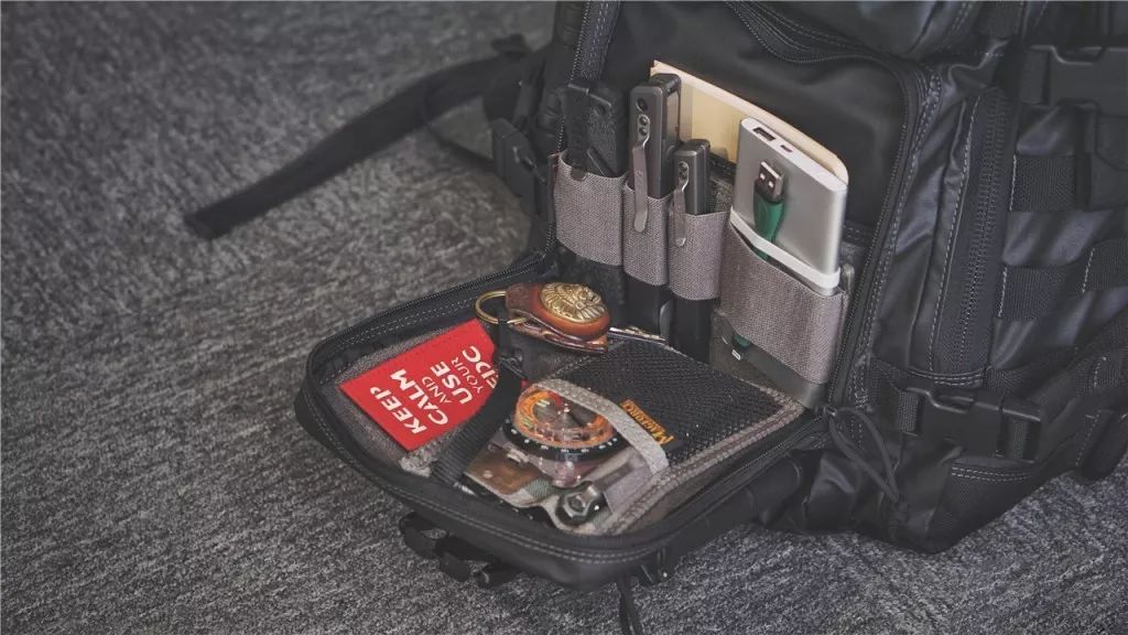 前置副包的主仓空间很大了,分隔成了两个空间,且顶部配置了钥匙挂绳。内部使用了大面积的魔术贴面料,配合魔术拓展板用户可以进行个性化的组合,拓展性极强。可以用来放置文具和日常用品。