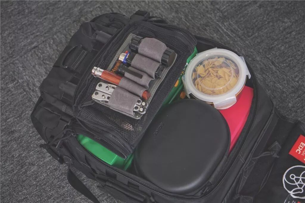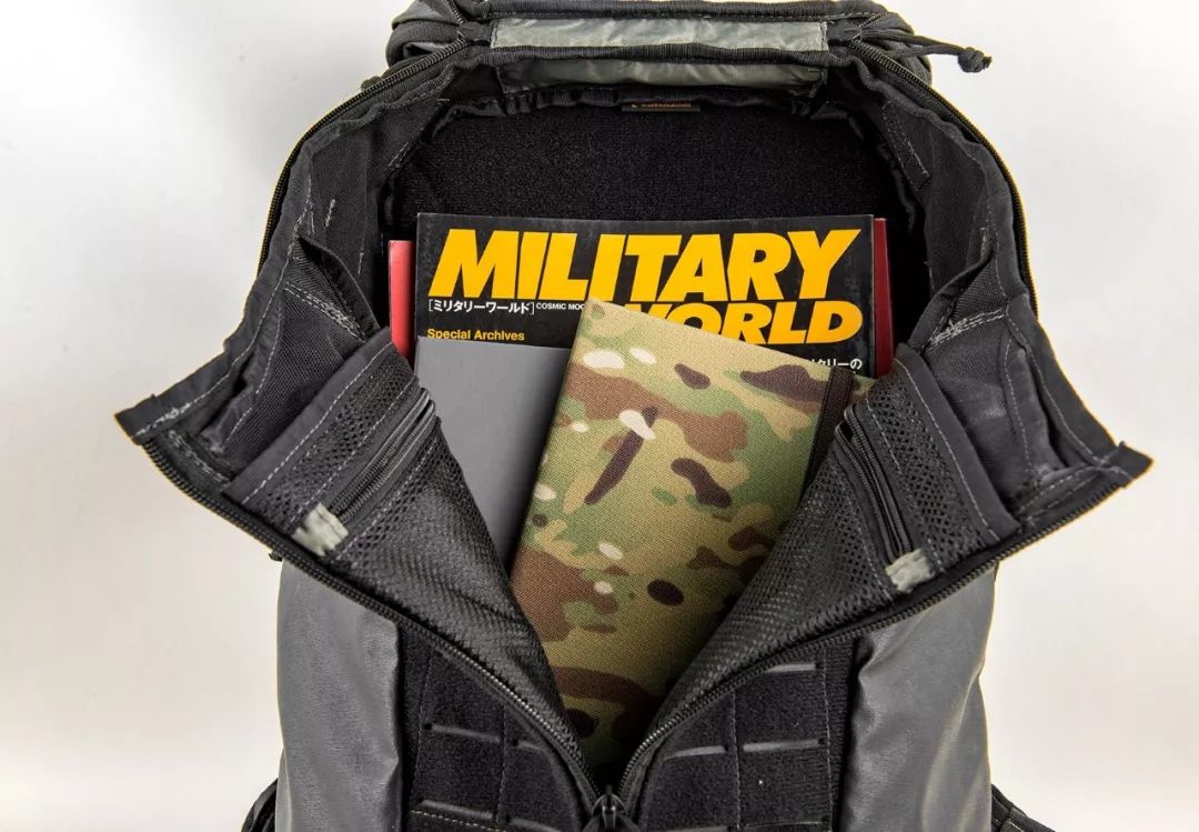上盖内侧网面设计可以存放证件纸张等用品,并且有大面积魔术贴面,可以粘贴士气贴及拓展附件。